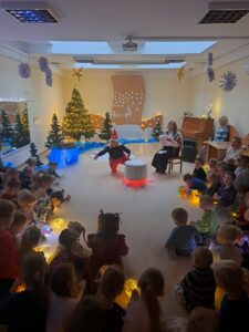 Kas rytą bendruomenę džiugino vis kiti pasirodymai: vaikai ir darbuotojai dainavo skambias dainas, sukosi rateliuose, sekė stebuklingas pasakas ir dalijosi nuoširdžiais linkėjimais. Šios akimirkos mums priminė, kad didžiausia dovana yra laikas kartu ir dėmesys vienas kitam.
