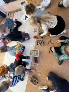 Kūryba ir mokslas vienoje erdvėje „Skrisdami“ vaikai pastebėjo raides, o raidę Ž kūrė iš pačių įvairiausių medžiagų: