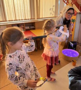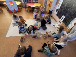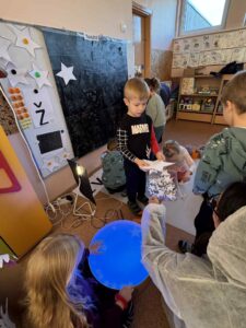 Mūsų centro mokytoja Jurgita pasidalino gerąja patirtimi bei kūrybiškomis idėjomis su lopšelio-darželio „Žirniukas“ pedagoge ir pakvietė ją stebėti atvirą veiklą. Šios dienos tema – „Skaičiuojame žvaigždes“ – mažuosius ugdytinius pavertė tikrais kosmoso tyrinėtojais.