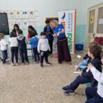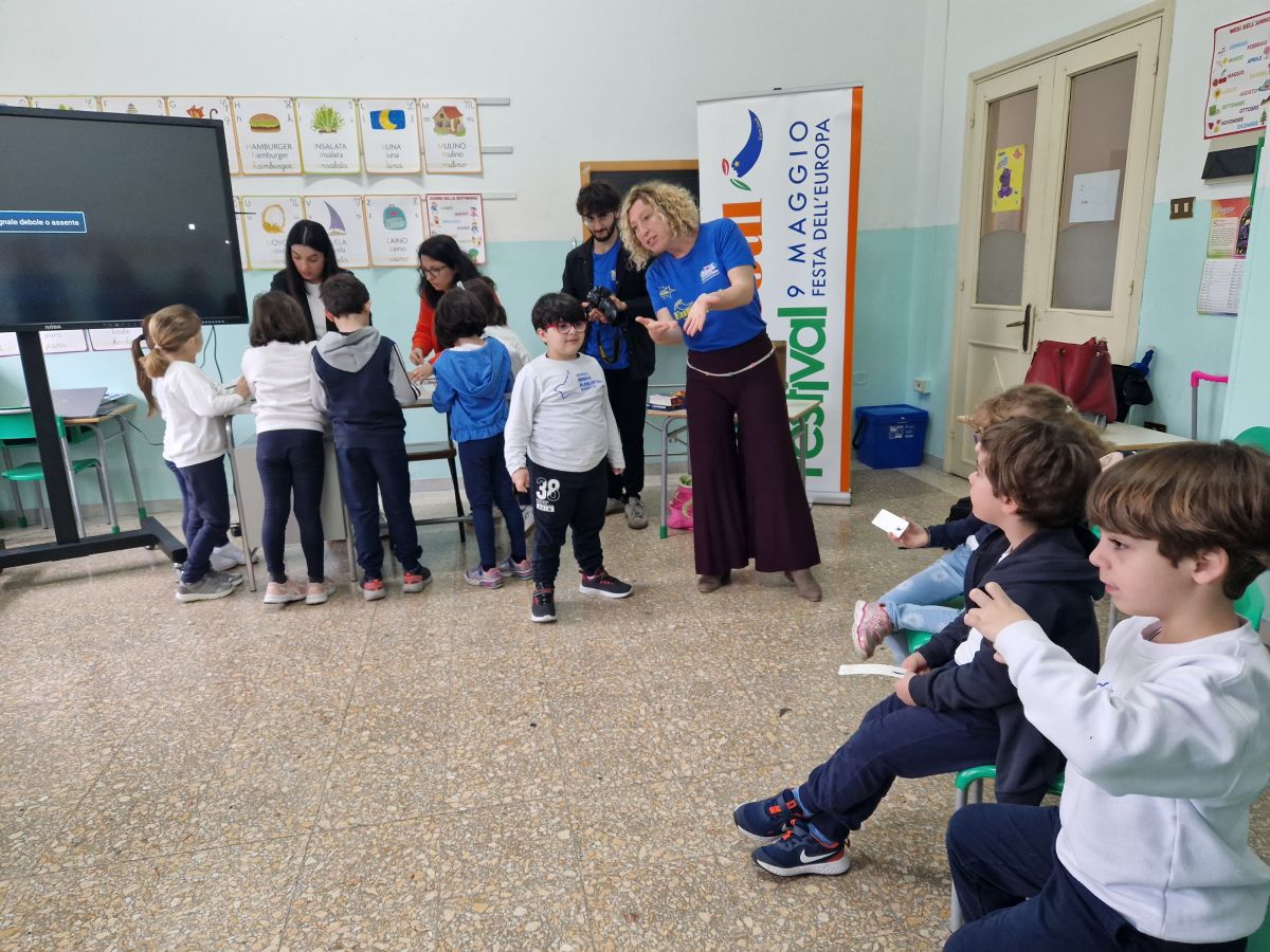 Pažintis su jauna mokytoja Sabrina, jos atviros veiklos stebėjimas apie Europos kilmę, kuri siejama su graikų mitologija, dievais. Vaikų jaudulys prisistatant angliškai. Mokytoją papildanti bibliotekininkė Andrrea, veiklos metu vaikų dėmesį išlaikanti intonacijomis ir sensoriniais akcentais. O kur aplinkoje dėmesį Europos Sąjungai kuriantys organizatoriai. Vėliau vizitas po ikimokyklinio skyriaus erdves. Negalėjome atsistebėti, kaip tiek mamų visose ikimokyklinio ugdymo grupėse vienu metu ruošiasi šventei. Mokykloje Instituto Maria Ausiliatrice Soverato tai įprasta, nes didelis dėmesys skiriamas šeimai, jos įsitraukimui.