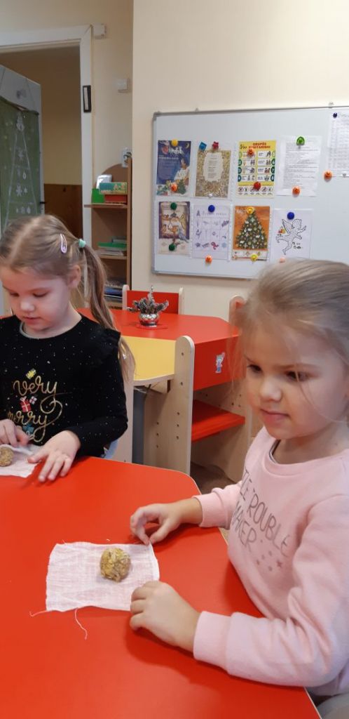 Išėję į lauką su vaikais pastebėjome, kad paukšteliai ankstesnius skanukus sulesė… Prieš pakabindami pirmuosius susitarėme, kad „baltojo bado“ laikotarpiu lesinsime nuolat, kad paukšteliams nepritrūktų lesalo. Kartu su vaikais gaminome skanukus. Buvo įdomu ką paukšteliai lesa. Pasirodo, sėklas, kurias vaikai mėgsta ir noriai ragavo, kruopas iš kurių verda košes, tik taukai vaikams nepažįstami, nors pauosčius teigė, kad kvepia skaniai. Viską maišėme, formavome, laukėme kol sušals ir nešėme į lauką.