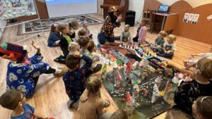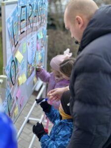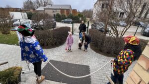 Veiklos grupėse ir bendrystė kieme Visose grupėse vaikai kalbėjosi apie tai, ką reiškia gerbti skirtumus ir puoselėti draugystę. Mažieji kūrė savo gatvės segmentus, o kieme juos pasitiko linksmi draugai. Jie ne tik patikrino atvykusiųjų „tolerancijos lygį“, bet ir pakvietė įveikti simbolinę tolerancijos virvę.