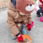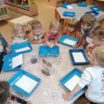 „Smalsučių“ grupės ugdytiniai (2-3 m.) – patys smalsiausi pasaulio tyrinėtojai ir atradėjai. Jie įsitikino, kad žymes palieka daug kas – pieštukai, kreidelės, dažai. O smėlis? Kaip padaryti, kad smėlis pieštų? Vaikai sumaišė vandenį su smėliu, prisiminę dainelę apie košelę. O tuomet – laikas fantazijai ir bandymas! Tikrai ilgam įsiminė ši patirtis, kad purvas – ne tik ant batų, bet ir mene.