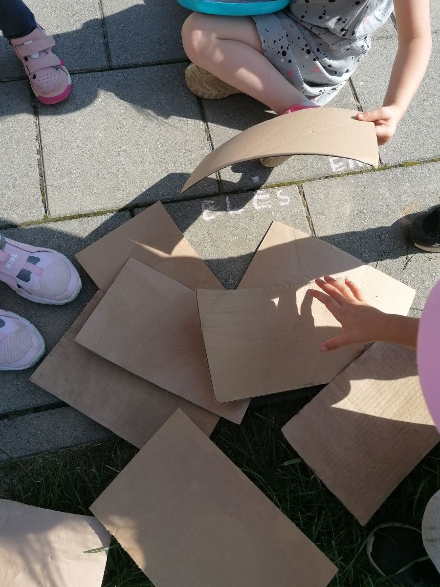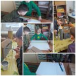 Vaikai pabandė nupiešti brėžinį, padedami mokytojos padėjėjos Jolitos, iš medžio ir kartono atliekų suklijavo sienas, dekoravo popieriaus atliekų kvadratėliais, sukūrė Lietuvos vėliavos aplikaciją.