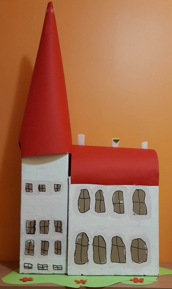 Naudojant matematikos, tiksliųjų ir gamtos mokslų žinias su tėvelių pagalba atliko matavimus. Pilies matmenys: iki 50 cm x 50 cm. Pilies detales suklijavo ir nudažė. Į darbą įsijungė visa šeima: mama, tėtis, brolis ir mažoji sesė. Rezultatas puikus, Jokūbas komandiniu darbu patenkintas.