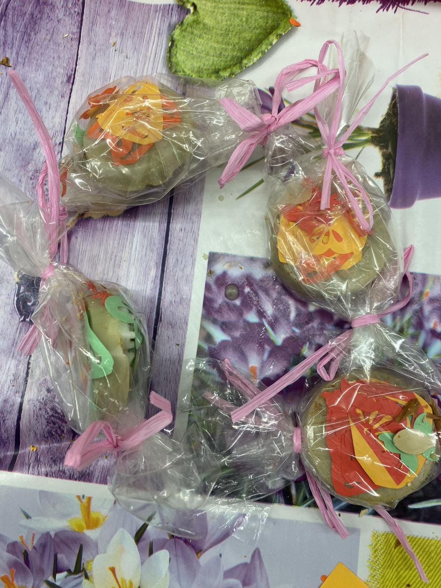 Kaip ir iš ko gaminamas muilas? Daug pamąstymų sukėlė…. Pirmiausiai mikrobangų krosnelėje buvo išlydyta muilo bazė. Išlydytą bazę vaikai šaukšteliu pildė silikonines formeles. Pridėjo sudžiovinto moliūgo juostelių, jų sėklų, žievelių, dekoravo savo gaminius spalvingais karpiniais bei guminukais. Ir paliko 15 min. sustingti. Pagamintą masę išėmė iš formelių. Vaikai pasigamino gražių bei įdomios formos, nepakartojamų, vienetinių muiliukų, kuriuos galės išbandyti namuose.