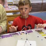 Ir nieko nelaukę ėmėsi veikti. Stojo tyla, susikaupimas. Jungė pagaliukus vieną su kitu, tvirtindami plastelinu. Netgi pradėjo lenktyniauti, kuris pastatys aukštesnį ir atlaikys net 3 sekundes.