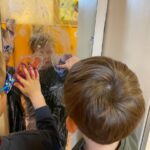 Burokėlių sultys, braškių miltai, ciberžolė ir kava malta, kakava, mėlynosios arbatos žiedai ir tai viskas natūralu ir naudojama mūsų virtuvėje. Kad gauti norimos tekstūros, kad būtų galima dažyti, vaikai naudojo priedus : kukurūzų miltus be glitimo ir šiltas vanduo. Maišė ,pylė ir stebėjo, ar jau būtų galima su jais piešti. Kai jau jau bendru sutarimu nusprendėme, kad dažai pagaminti, laukė smagiausia dalis – išbandyti savo pagamintus dažus piešiant ant plėvelės, šviesos stalo ir netgi veidrodžio. Savarankiškai patys tarpusavyje tarėsi, kas kur pieš ir su kuo norėtų drauge išbandyti savo pagamintus dažus. Vaikai piešė ir relaksavo, nes paklausus, ką piešia, tik tylėjo, nes labai įsijautė į patį piešimo procesą. Pabaigę piešti vaikai žiūrėjo ir gėrėjosi, kad gavosi puikus meno kūrinys.