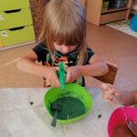 Galimybė išbandyti skirtingus įrankius, netikėtas medžiagas ir neįprastus paviršius – tai vienas iš STEAM kompetencijų ugdymo metodų, lavinančių kūrybiškumą, technologinį ir inžinerinį pažinimą. “Smalsučių” grupės 2-3 m. ugdytiniai turėjo galimybę išbandyti volelį, kaip priemonę, piešti, o gal dažyti su netikėta tam procesui medžiaga – tiesiog vandeniu (nebūtinai dažais) bei išbandyti tokius paviršius kaip grindys, sienos, kreidai skirta lenta. Vaikai buvo susidomėję, aktyviai veikiantys.