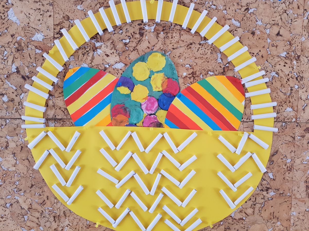 Vaikai interaktyvioje lentoje, paveikslėliuose, knygose tyrinėjo lietuvių liaudies raštus. Tarėsi, kokį raštą norėtų atkartoti, kokių priemonių prireiks jam atlikti. Raštui sukurti naudojo iš antrinių žaliavų susuktus vamzdelius ir klijus. Pasikartojančia rašto seka buvo sukurtas Velykų bobutės krepšelis, į kurį linksmai suriedėjo vaikų marginti margučiai.