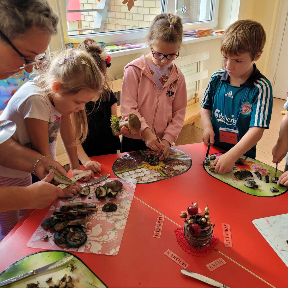 Priešmokyklinio ugdymo grupė „Saulės zuikučiai“ vaikai susipažino ir atliko STEAM bandymus su grybais. Paąžuolis baravykas pats pasisiūlė vaikams į draugiją, nes augo patvoryje! Iš viso radome 15 baravykų – susipažino su grybo sandara, dydžiu, forma, kvapu ir grybo „gyventojais“… Vaikai sužinojo grybo pavadinimą, užrašė interaktyvioje lentoje, įtvirtino skaičiavimo, matavimo, lyginimo žinias. Pakartojo geometrinių formų sąvokas ir mokėsi prilyginti atitinkamai grybo formai. Atliko eksperimentus: džiovinimas saulėje, popierinės servetėlės stebėjimas (nuo drėgmės šlampa, nusidažo), grybo stebėjimas uždarame maišelyje ir vandens lašelių kaupimasis ant maišelio sienelių, bei formos keitimo. Pasiūlėme pabandyti pasėti, nes labai norėjo rasti sėklų. Vaikai tikisi po savaitės rasti išdygusius!