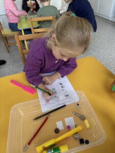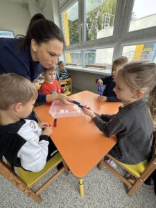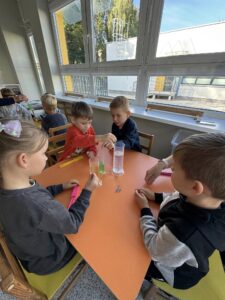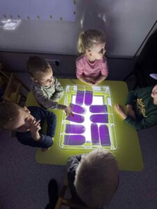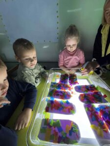 ,,Žirniukų” grupės ugdytiniai ir mokytoja Vilma Maslauskė vyko į Šiaulių lopšelio-darželio ,,Ežerėlio” STEAM centrą, kur dalyvavo veikloje ,,Magneto magija”.
