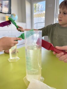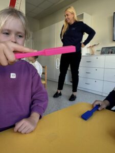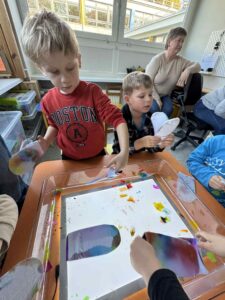 Trauka ir Stūma: Vaikai stebėjo ir bandė, kaip magnetai veikia vienas kitą – traukia (susidūrus priešingiems poliams) arba stumia (susidūrus vienodiems poliams). Tai padėjo vizualiai ir praktiškai suprasti nematomą jėgą ir magnetinio lauko sąvoką.