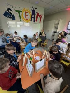Tokios interaktyvios patirtys ne tik suteikė konkrečių žinių apie fiziką ir ugdė loginį mąstymą, bet ir žadino smalsumą bei skatino kūrybiškumą (Menai). Grįžę iš STEAM kambario, vaikai dalijosi atradimais, parodant, kaip žaidimas gali tapti efektyviausia mokslo pamoka!